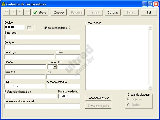 Cadastro de Fornecedores